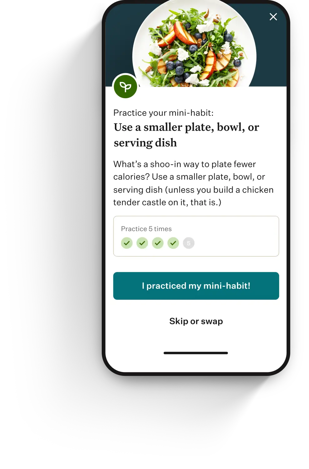 - Bite-sized, daily lessons to teach you healthier habits for lasting weight loss