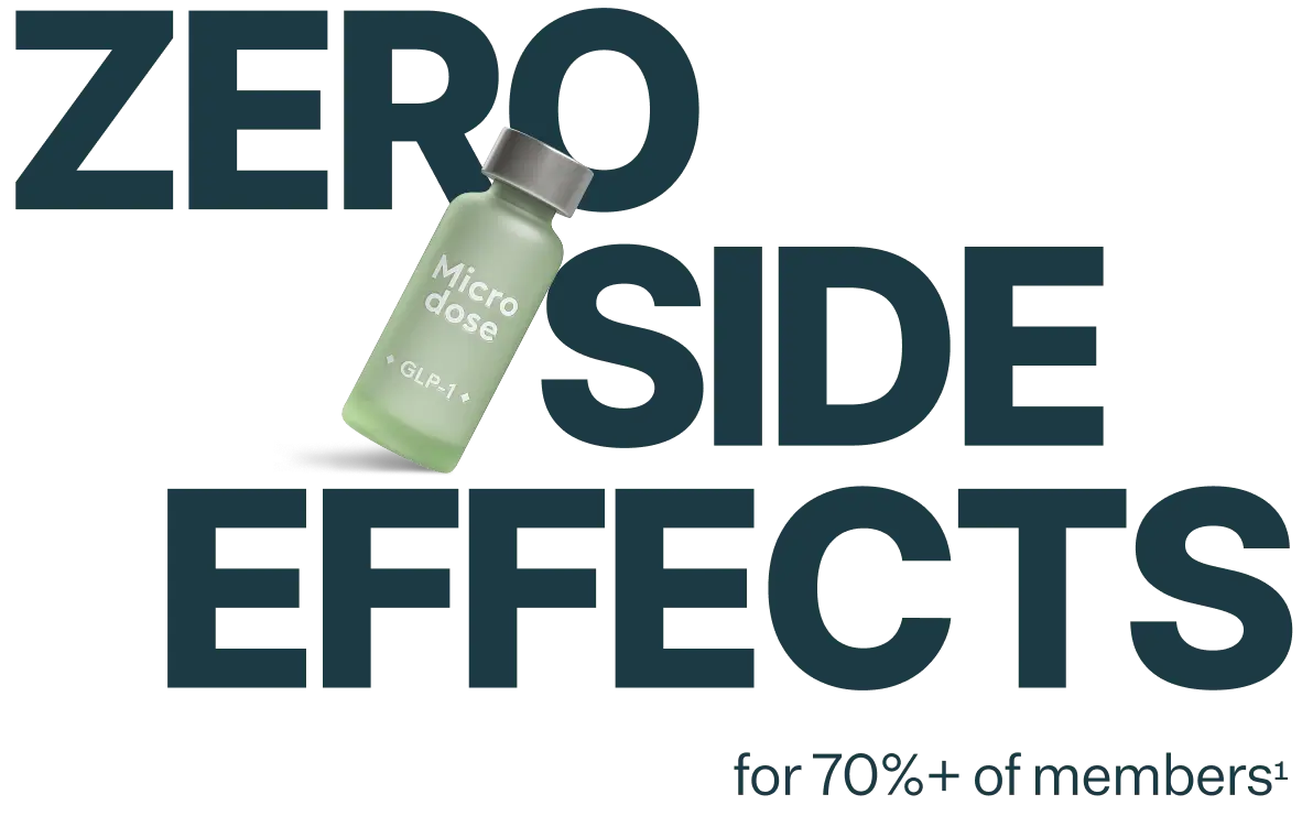 1 More than 70% of people reported no side effects at the Microdose GLP-1Rx dosage. Based on an analysis of self-reported data from 10,601 engaged Noom GLP-1Rx Program users.